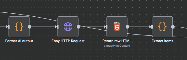 Unfortunately, this way of doing things no longer works, as eBay has seemingly put in place defences against web scraping. I need to redo the last part of the flow to utilise eBay’s API. I probably should have just done this from the start, but sometimes it’s important to try things and fail.