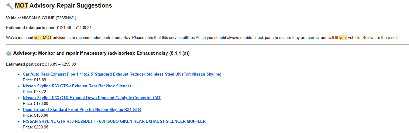 If you’re into cars like me, then at some point you’ve been scrolling through an online marketplace looking for your next project. Often, you’ll come across an almost ‘too good to be true’ moment, where a vehicle is priced on the cheap side, yet, seemingly in the pictures, has absolutely nothing wrong with it. You then decide to run its number plate through some of the various online checks to see exactly what is wrong with it. It is then at this point that you see that its previous MOT lists about 42 different advisories. Usually, I give up at this point, but that’s when an idea hit me: what if there was a way to use AI to not only email me to tell me what is wrong with a vehicle I’ve found, but also come up with an estimation of how much it would cost to fix all of its MOT advisories. With that, I got to work and built fixmymot.uk