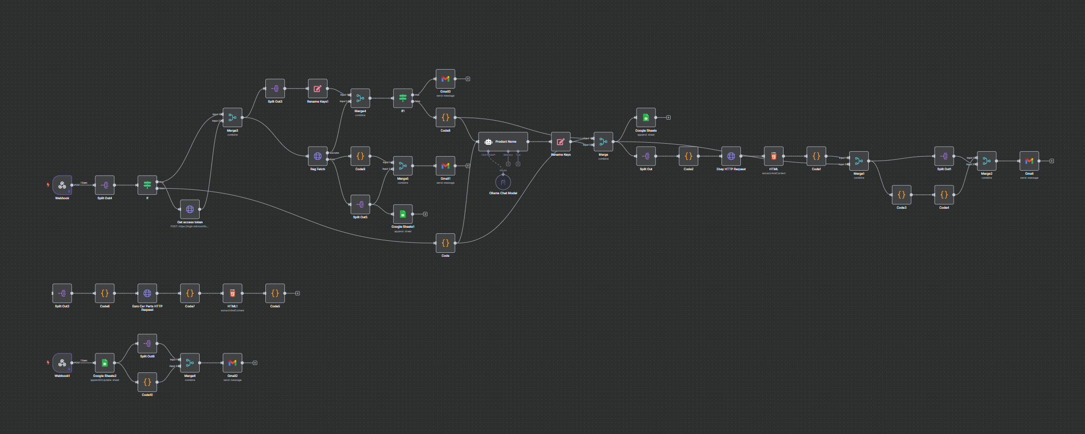I had another project on the go where I was playing around with custom emails for cold outreach, so I thought, rather than reinvent the wheel, I’ll just copy that part of the flow and add it in here. Long story short, I use a code block to input the various bits of API & AI data into a HTML formatter, then parse that through to a Gmail integration within n8n. It’s not exactly fancy, and it certainly doesn’t look pretty, but it works perfectly. As you can see from the screenshot, each email gives the vehicle detail, the estimated part costs, and then directly links through to the part that the AI agent thinks is needed to repair the MOT advisory. For those of you who know me personally, you know that the example in the screenshot is pretty apt for my car.